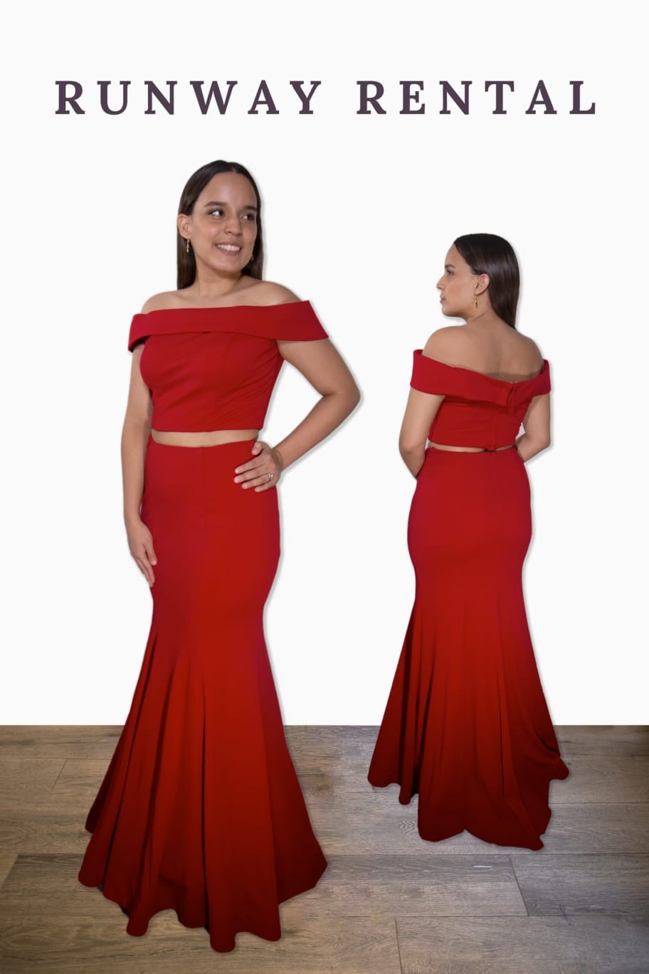 Jersey sirena de dos piezas con cuerpo fuera del hombro y espalda descubierta.