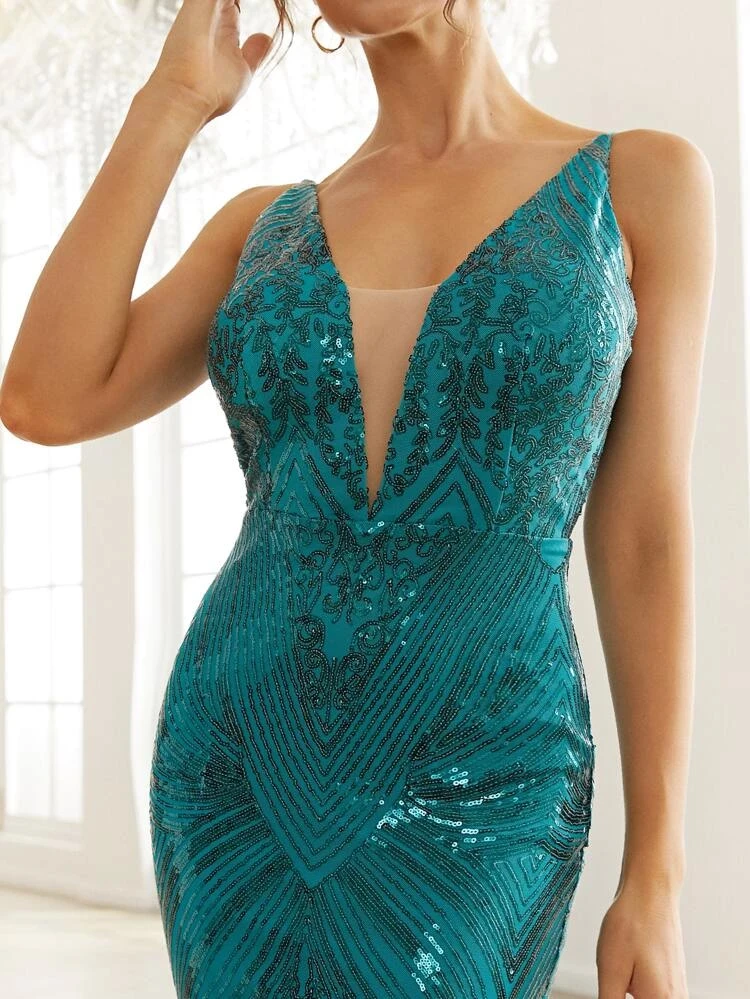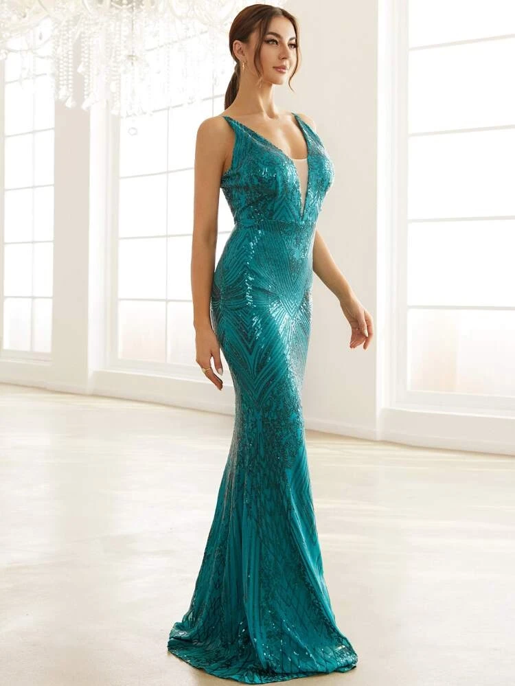 Vestido Missord, Verde Claro, con lentejuelas tipo Sirena.