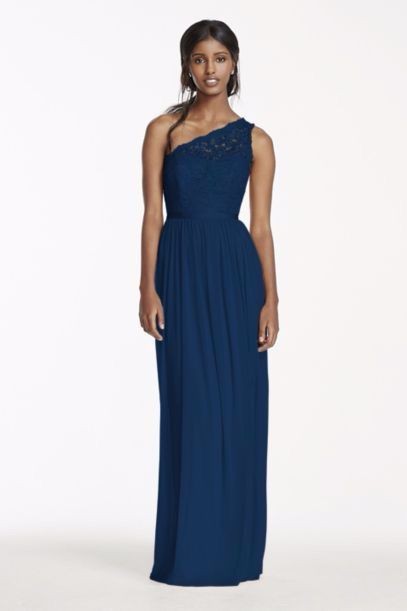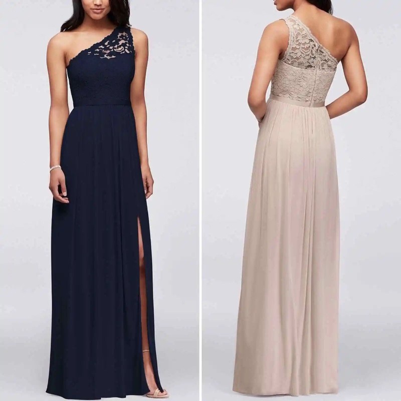 Vestido David´s Bridal Azul marino de encage en el pecho abertura en la pierns