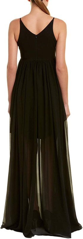 Vestido negro de falta carta y sobre falda larga de tirantes