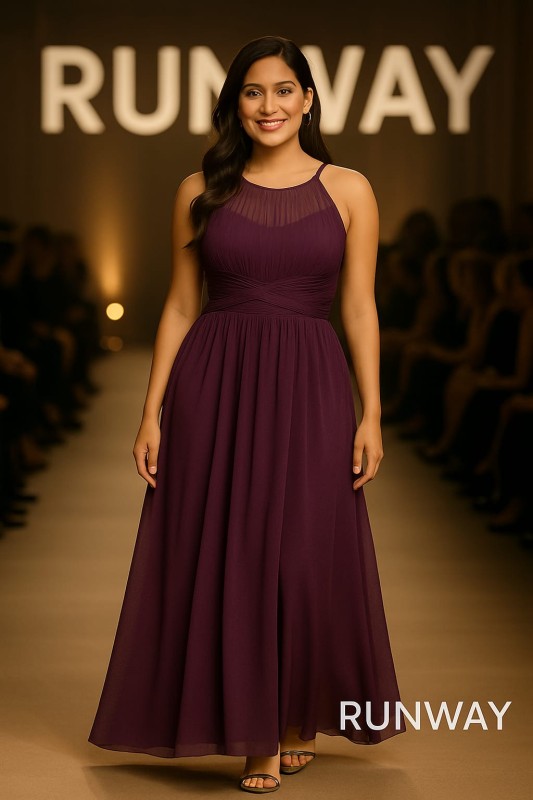 Vestido Adrianna Papell color morado plisado en frente, señido a la cintura y vuelos en la espalda talla 8(S)