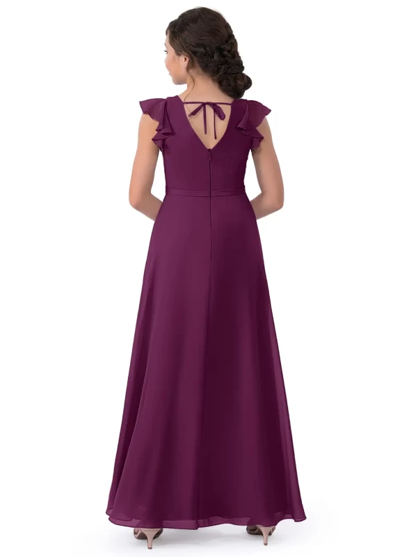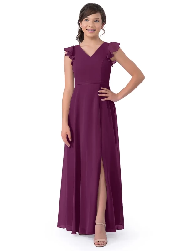 Vestido Azazie Acampanado Plisado Cuello en V Frambuesa
