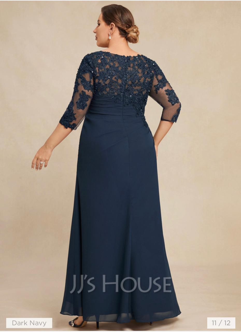 Vestido Azul Marino, manga corta de encaje, drapeado en la cintura, marca JJ’s House