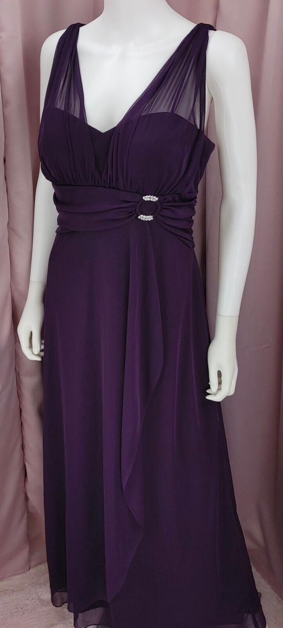 Vestido Betsy Adam color morado con broche en el talla y fruncido en la espalda talla 16 (XL)