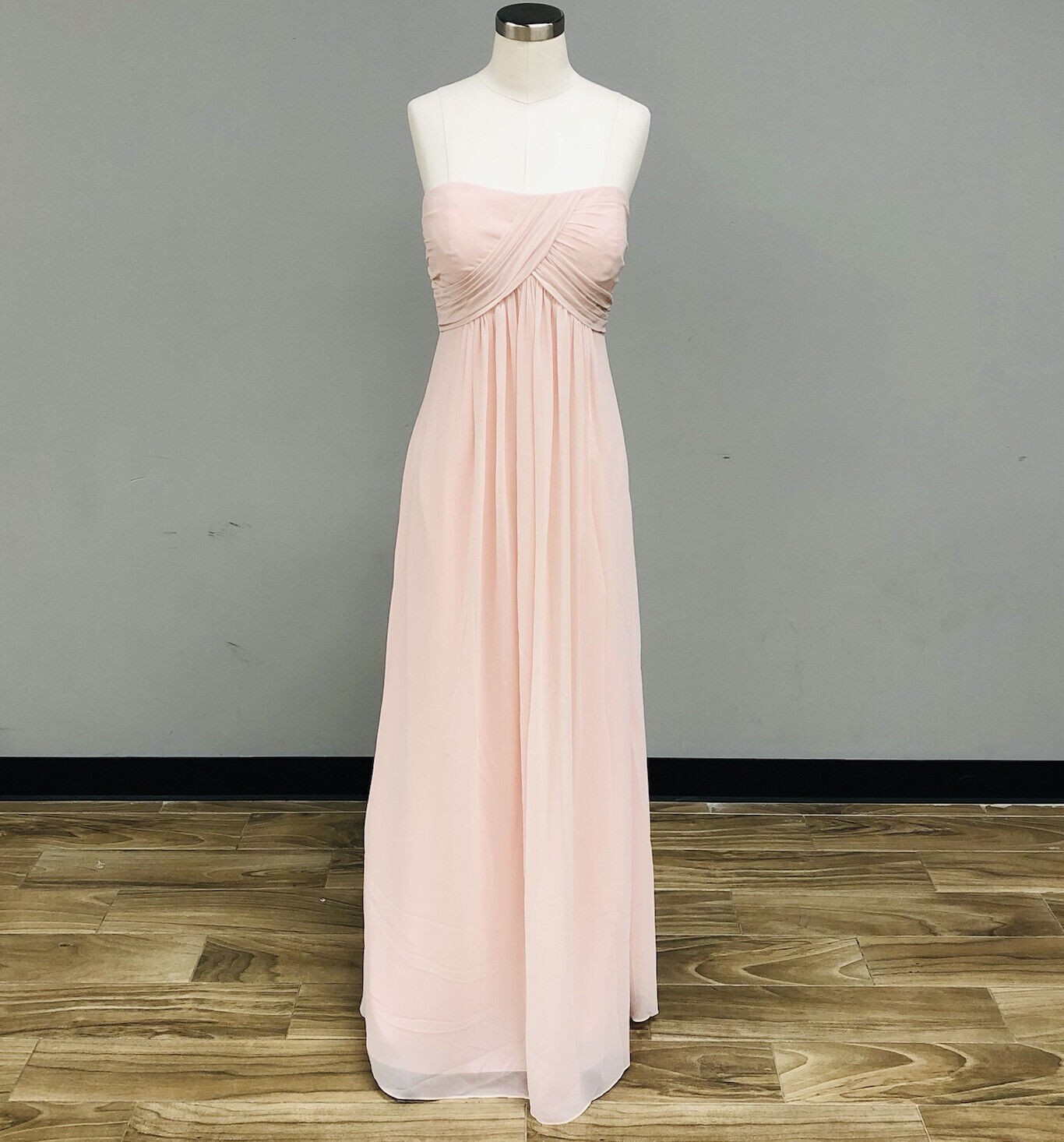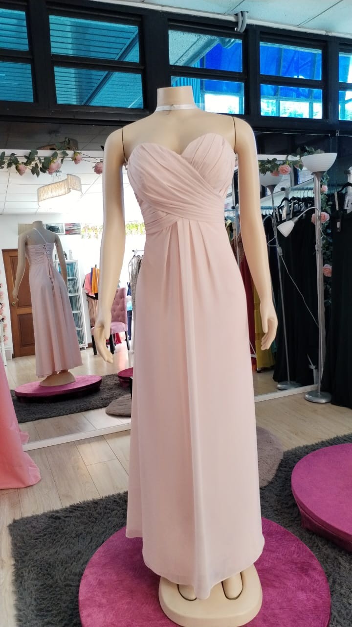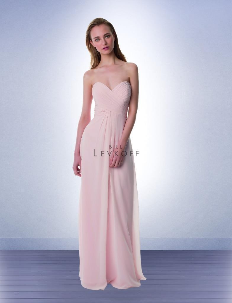 Vestido Bill Levkoff Rosa Pálido de chifon, plisado en el busto.
