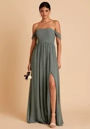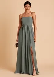 Vestido Birdy Grey color verde menta de tirantes y mangas removibles tela de chifon talla 8(S)