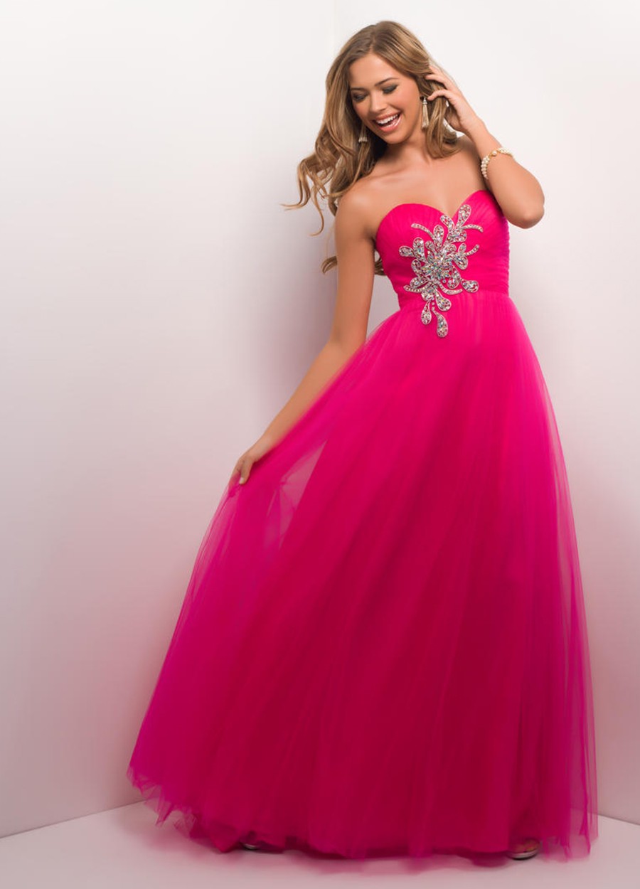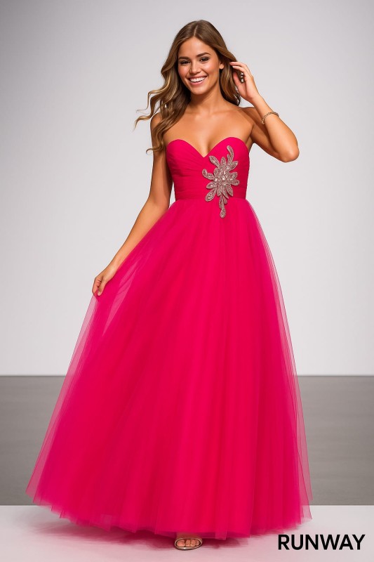 Vestido Blush Prom by Alexia color Purpura, de tul con fino decorado de piedras, sin hombros