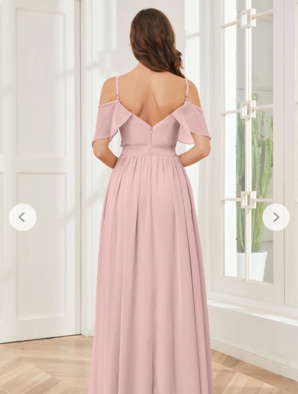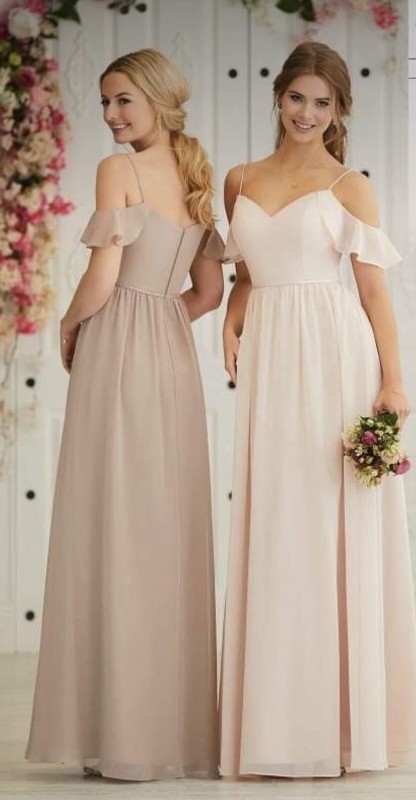 Vestido Christina Wu color rosa nude mangas caidas y tirantes talla 12