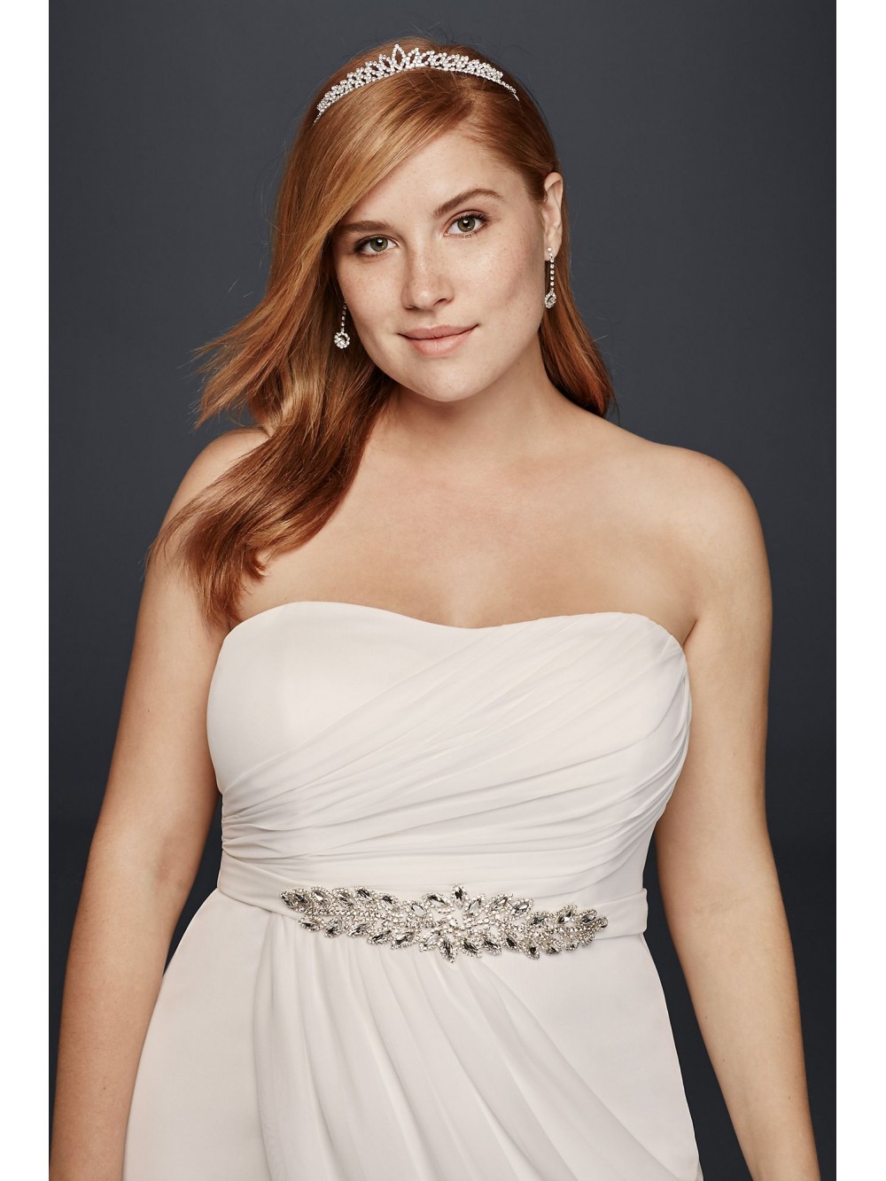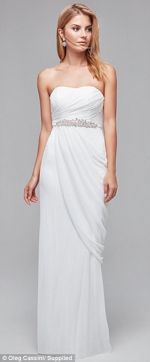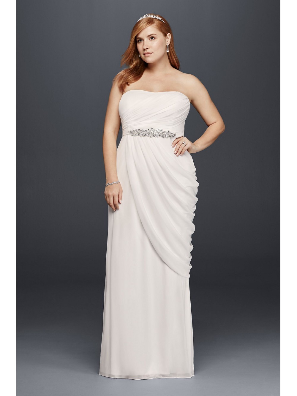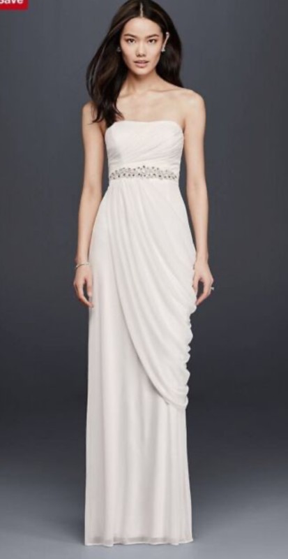 Vestido DB Studio color blanco con piedras en la cintura y vuelo a la cintura hombros afuera Talla 10