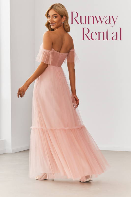 Vestido Evee Pretty color rosado de tul de mangas caídas talla 12 (L)