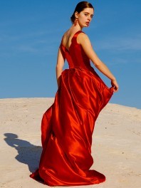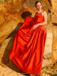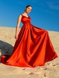 Vestido Hebeos Corte en A-Princesa Sin Mangas de Satín con Escote en V, Cola de BarridoTalla 10 (M)