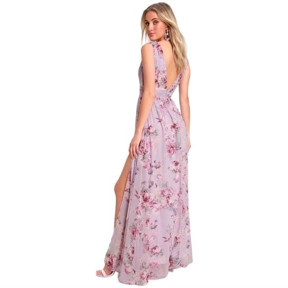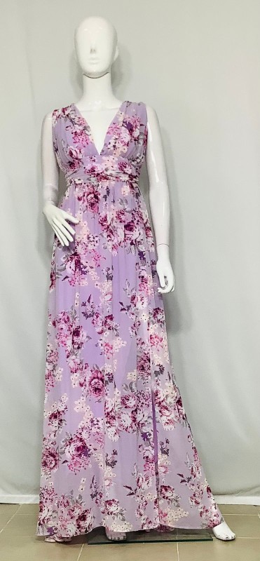 Vestido Lulus de seda floreado, señido a la cintura y abierto en frente.