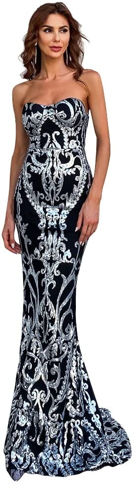 Vestido Negro con Lentejuelas plateadas, tipo sirena