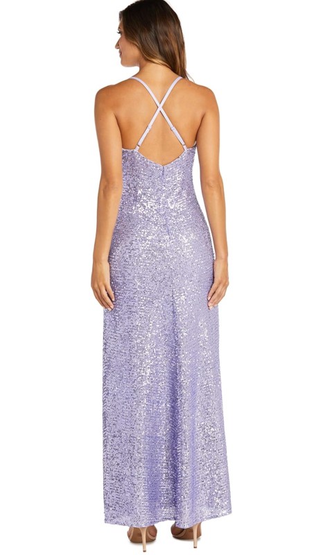 Vestido NightWay color lila de lentejuelas y tirantes talla 8 (S)-1