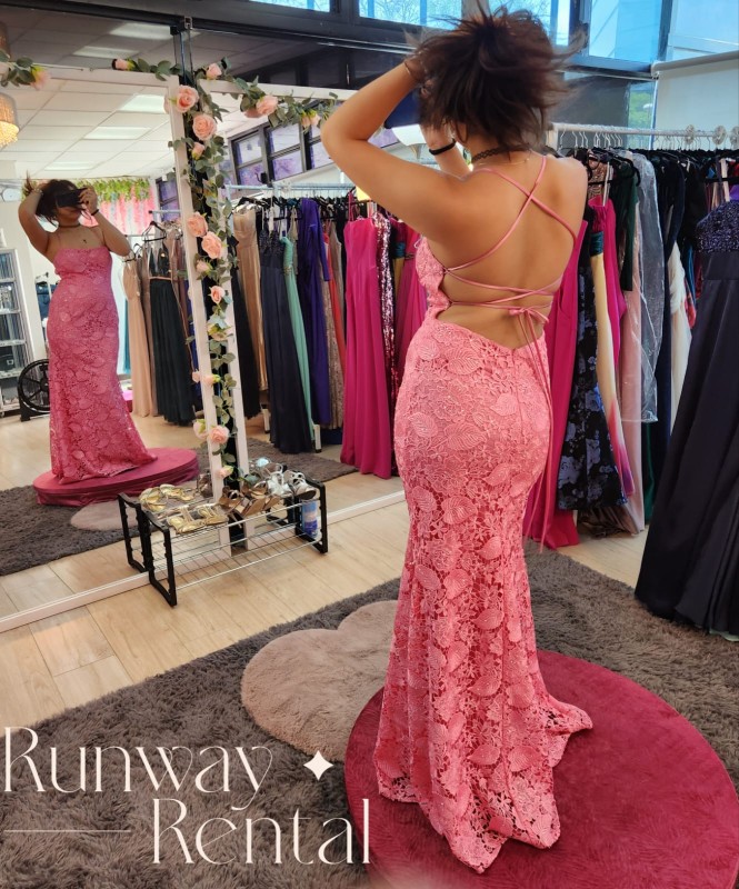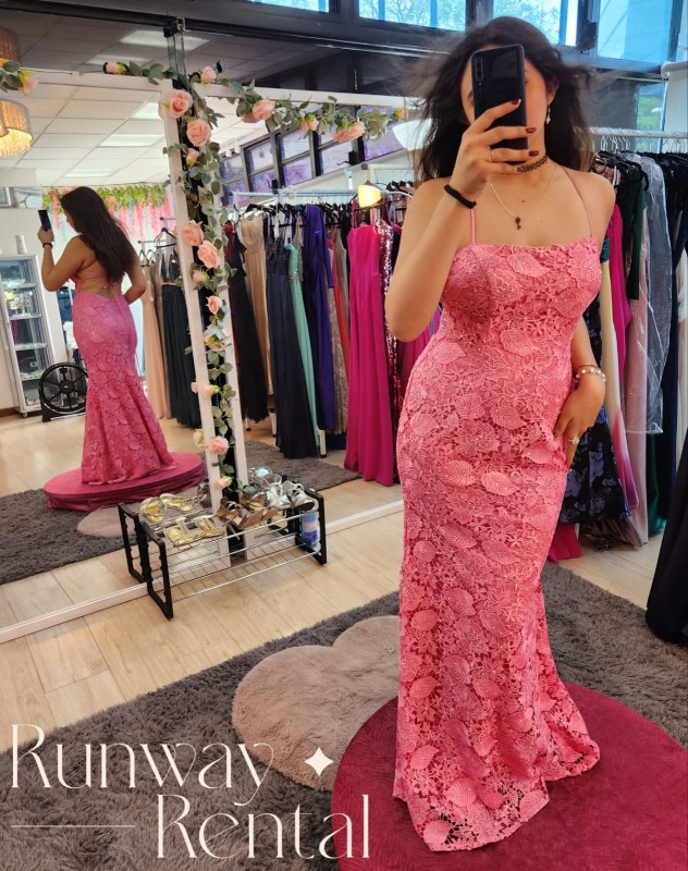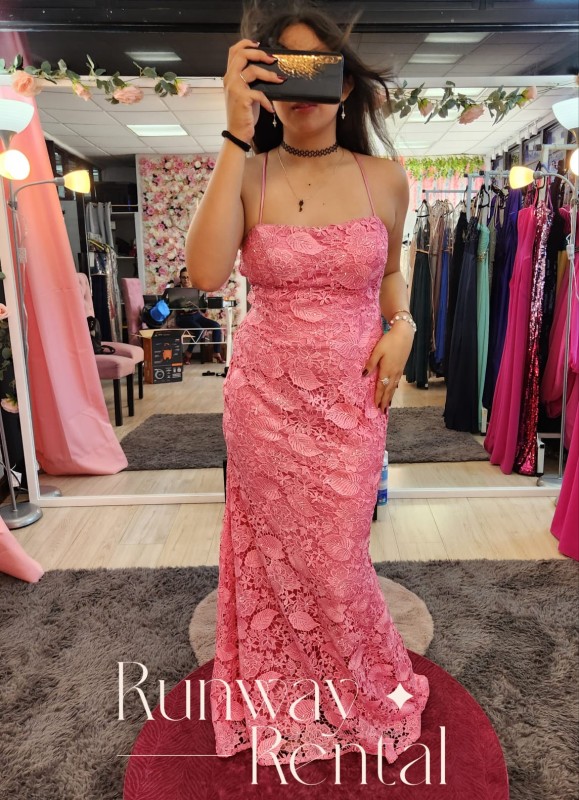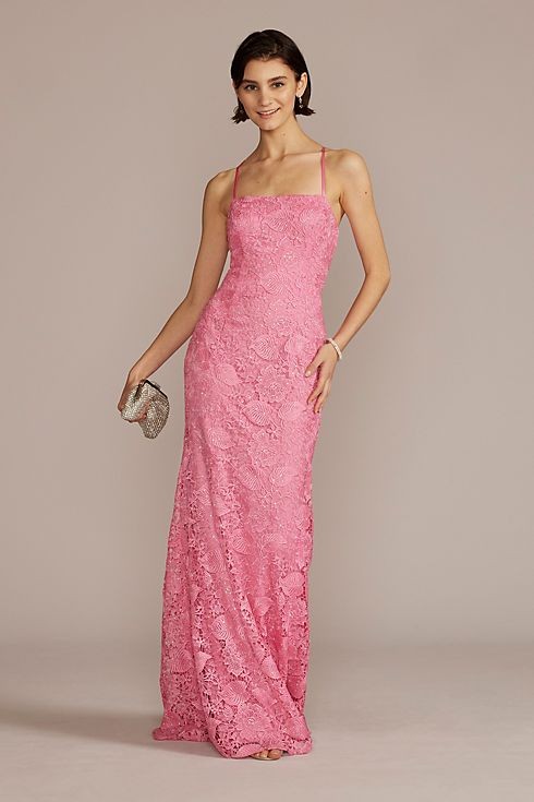 Vestido de fiesta de encaje hasta el suelo con cuello cuadrado