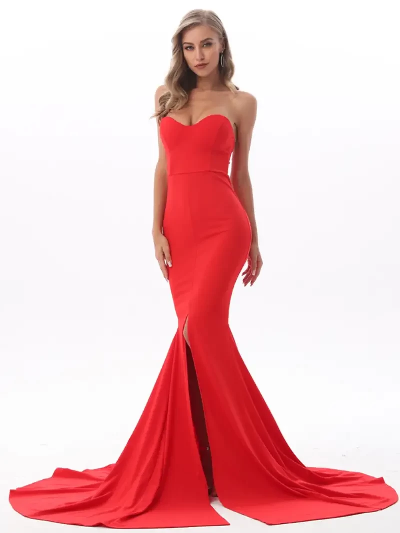 Vestido SEXY Strech color rojo sin tirantes y abertura en frente talla 6 (S)