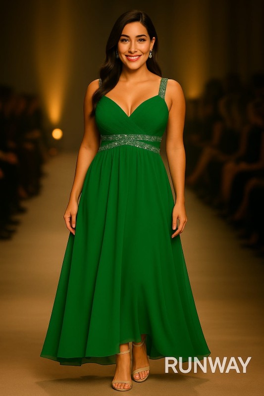 Vestido Verde con piedras en la cintura tipo A