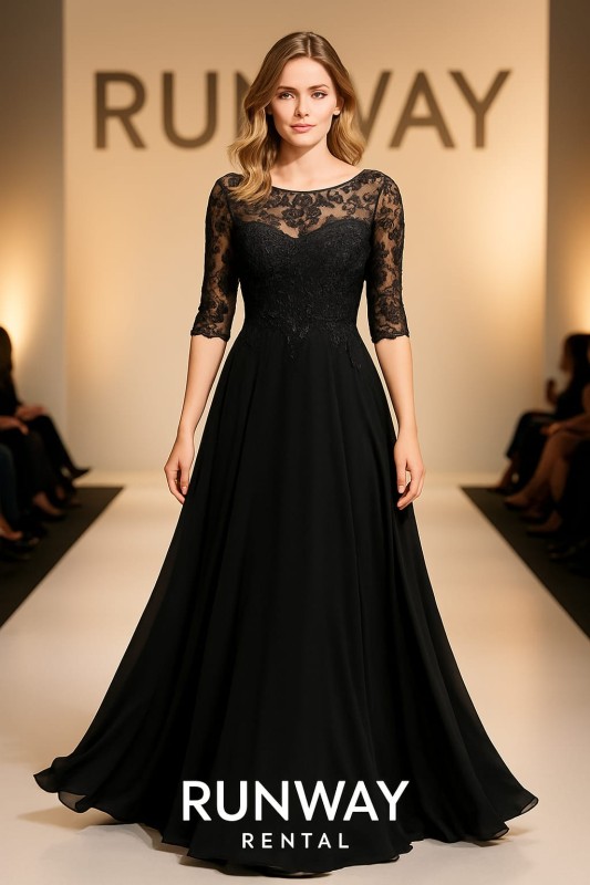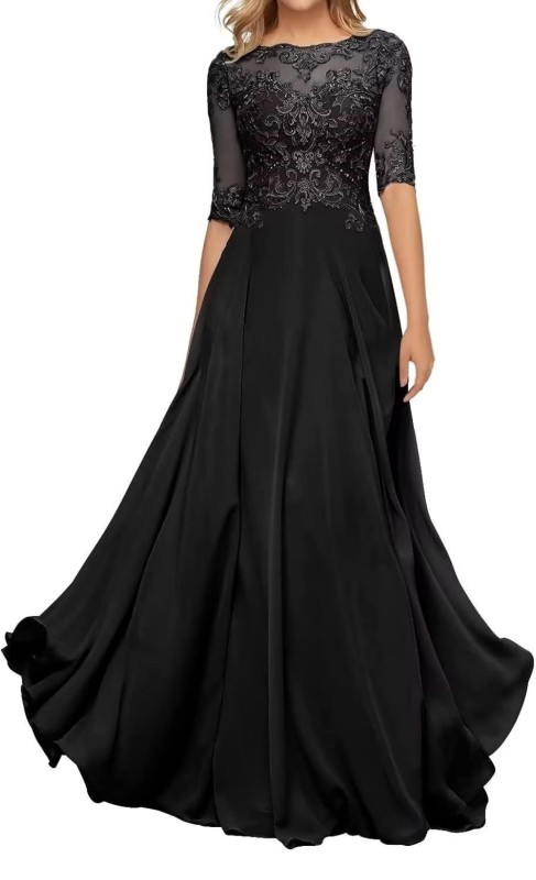 Vestido Wedding Drees Vanix color negro con decorado en el pecho,mangas y espalda talla 20 (XXL)