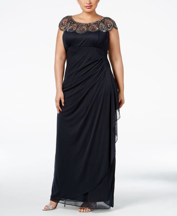 Vestido XCAPE color negro con cuello docarado con piedras color bronce fruncido en la espalda y en frente talla 14 (L)