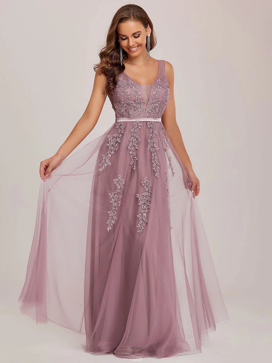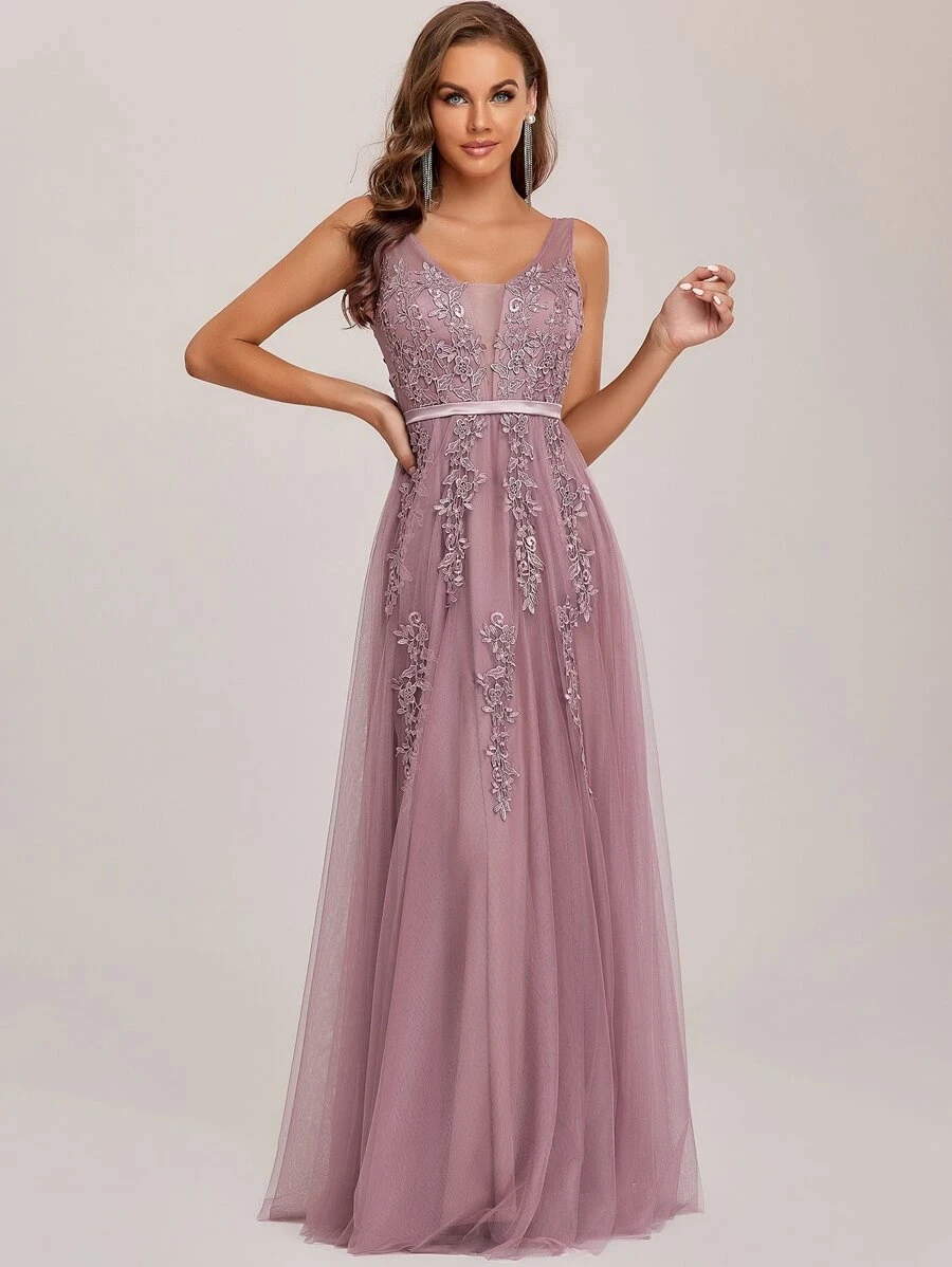 Vestido con decoración de encaje y lentejuelas, especial para dama de honor, aplique con diseño de espalda baja de malla, color Nude.
