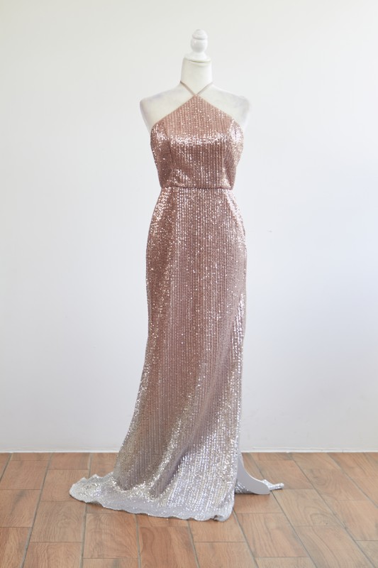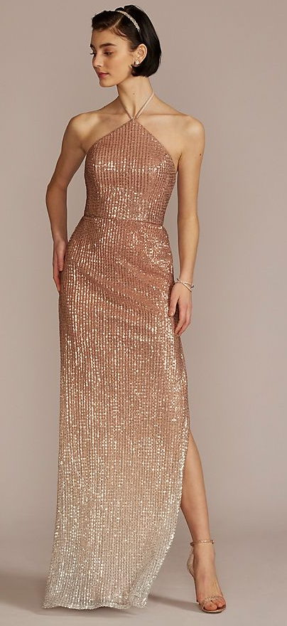 Ombre Sequin Halter Prom Dress