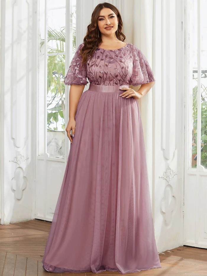 Vestido Ever Pretty de tul con Apliques De encaje, con cuello redondo color Rosa Nude