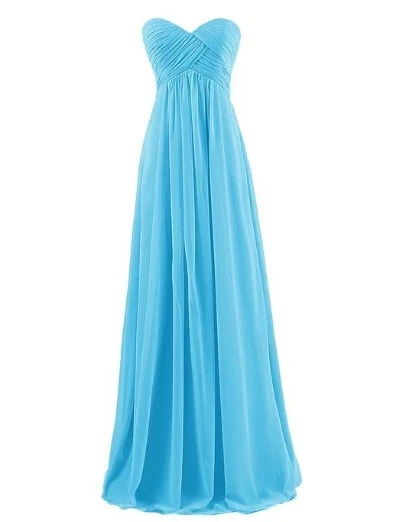 Vestido largo plisado de gasa celeste, Túnica caliente, escote en forma de A