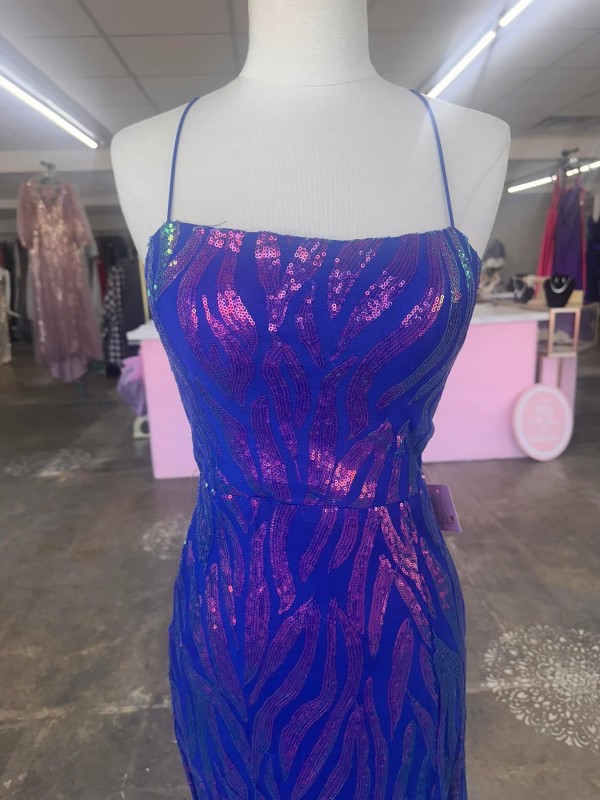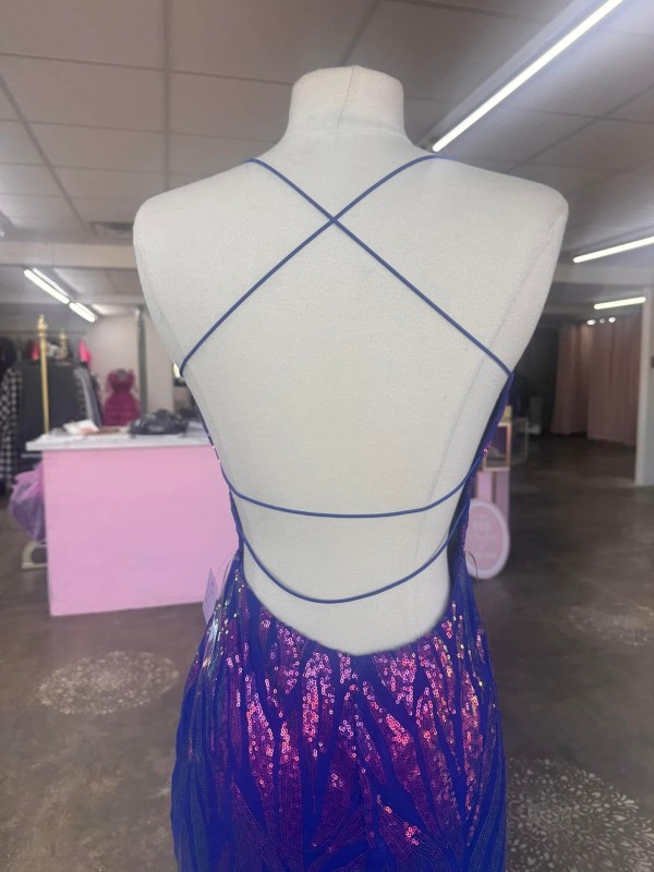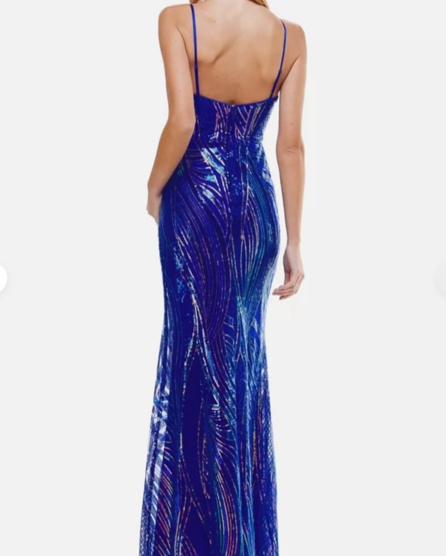 Vestido Next/Up color tornasol azul de tirantes y avertura en la pierna con lentejuelas talla 10 (M)-1