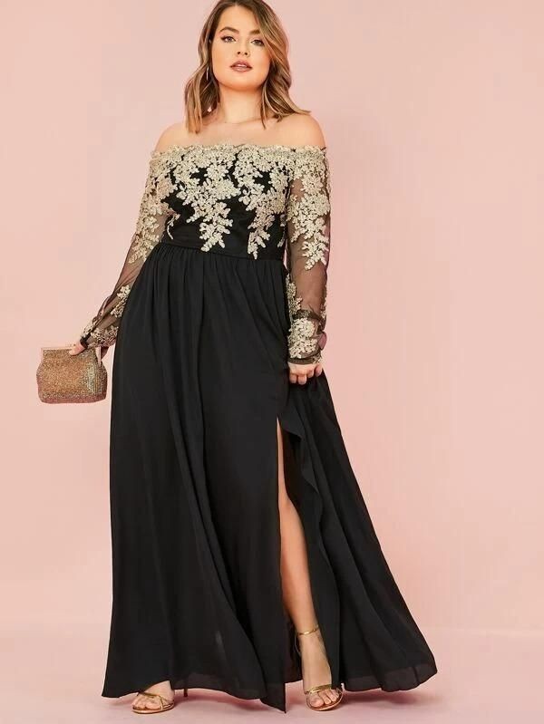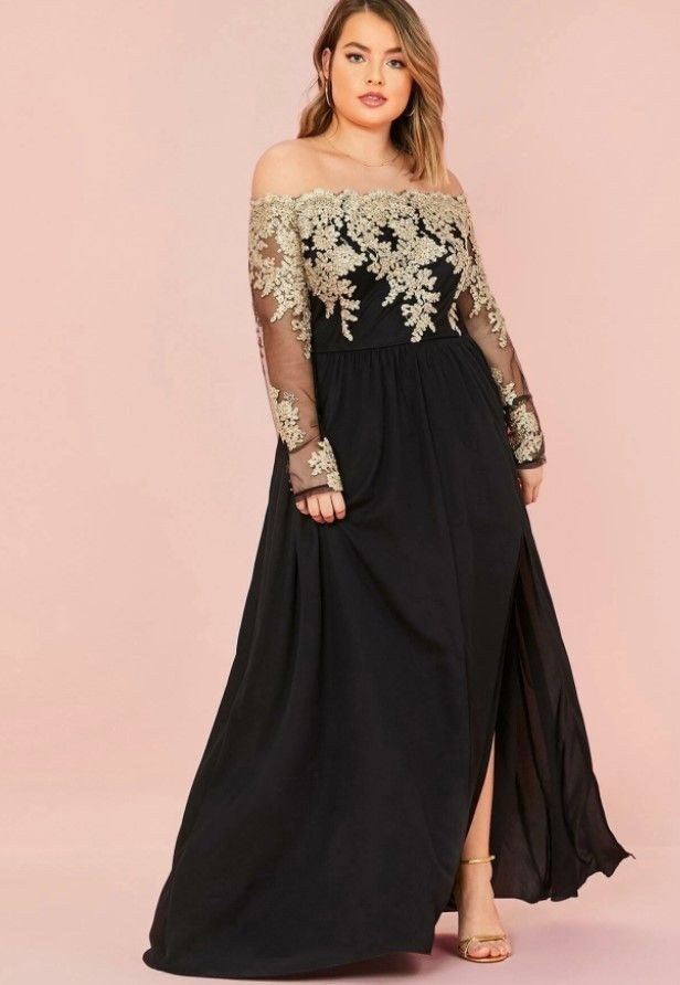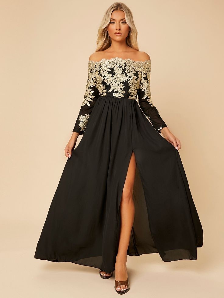 Vestido Soieblu color negro bordado con hilo dorado talla 12