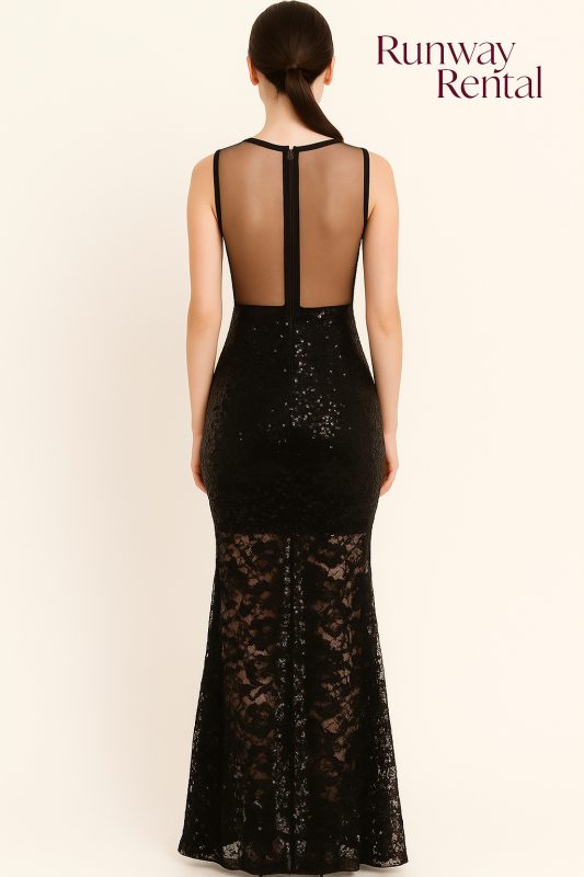 Vestido Strech Negro, con encajes y lentejuelas - Tipo Sirena