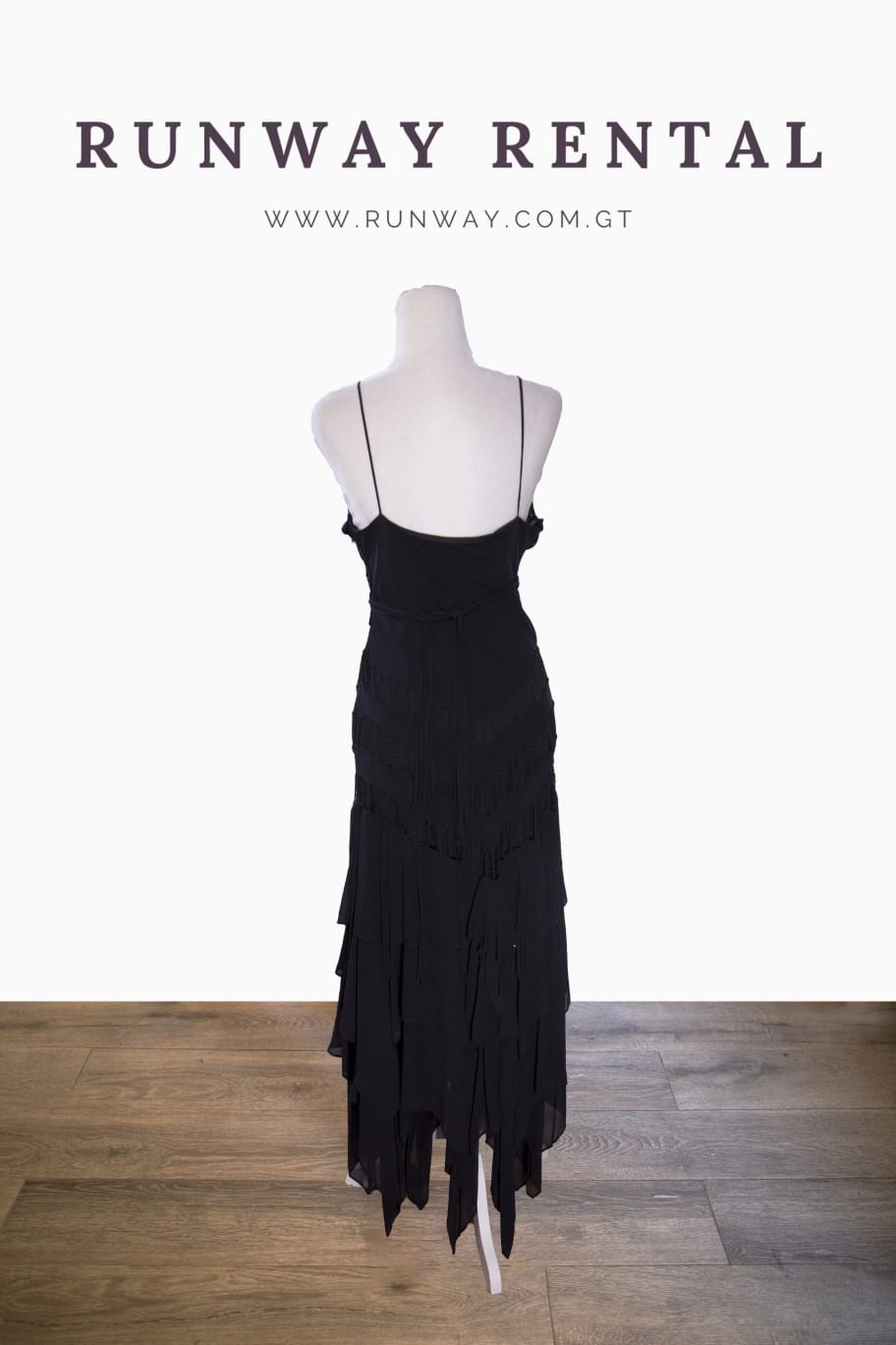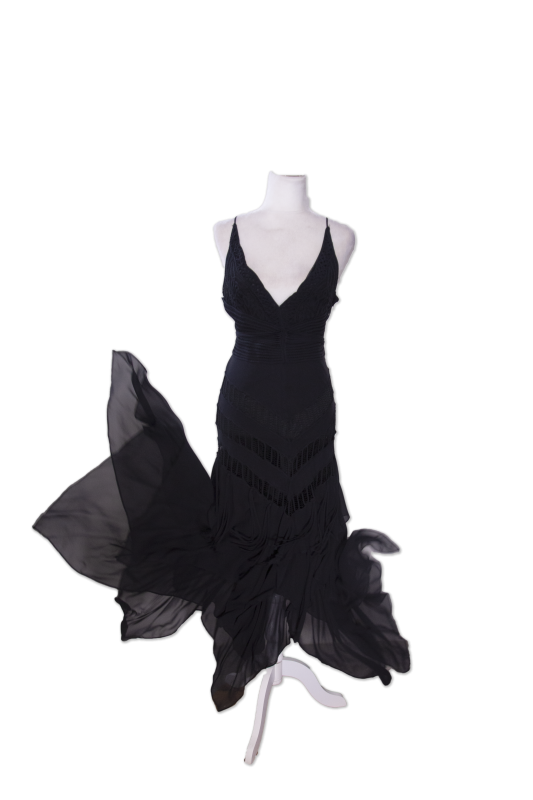 Vestido vaporoso de capas, color negro.